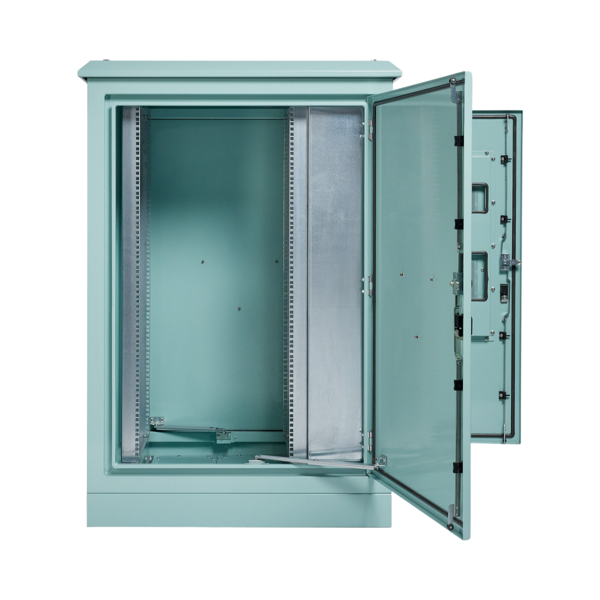 The front and rear doors are fabricated using 2.0mm galvanised steel sheet and are designed to provide flush recessed mounting to prevent vandalism and unauthorised access. The doors incorporate concealed removable hinges with captive pins. They are designed for a 110° opening and are provided with heavy duty door stays.