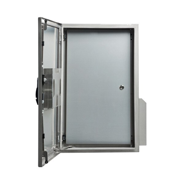 The surface mounted door is fabricated using 1.5mm Grade 316/316L Stainless Steel and incorporates concealed removable hinges with captive pins. It includes an M6 earth stud and a high quality machine-applied foamed in place (FIP) Polyurethane seal. A door stay is and an A4 plan pocket are provided with the outer door. An Inner Door is provided fitted. The outer door is provided with a Matte Finish (To provide an anti-glare, non-reflective finish).