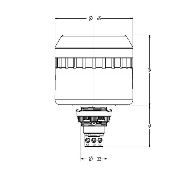 - Ø 65 mm panel-mount buzzer with LED steady/flashing beacon