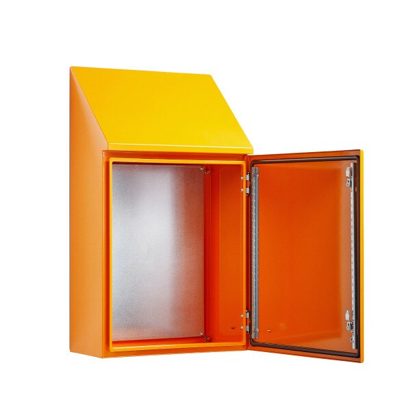 Sloping Roof Electrical Enclosure 600H x 400W x 250D IP66 Orange, Heavy Duty